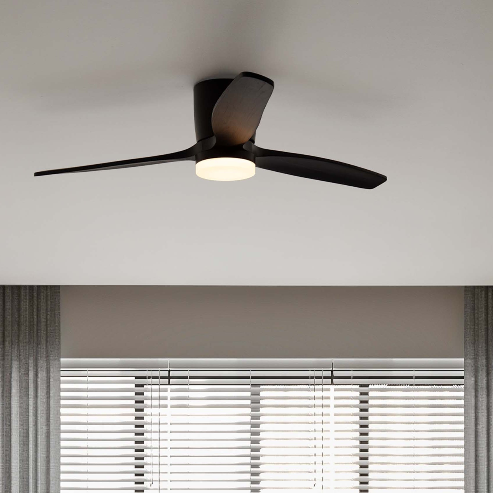 Nova Luce Aloa - ventilateur de plafond avec lumière et télécommande - Ø 132 x 27,5 cm - 18W LED inclus - noir sablé et bois noir