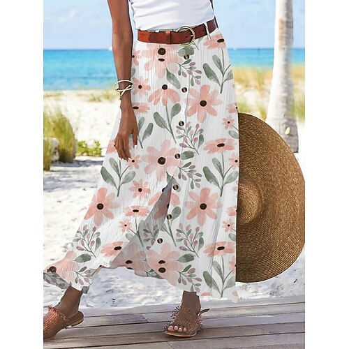 Per donna Gonna da vacanza Moda Casual Maxi Vita Alta Gonne Floreale Lettera Stampato Inelastico Quotidiano Streetwear Bianco Giallo Rosa Estate Poliestere