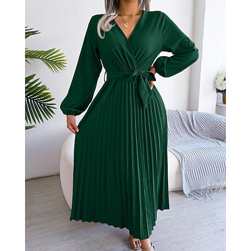 Per donna Abito Midi Abito in Raso Vestito da Festa Abito da Cocktail Moda Moderno Festa serale Feste Compleanno Vestibilità regolare Semplice Manica Lunga Scollo a V Nero Rosso Blu Reale Viola