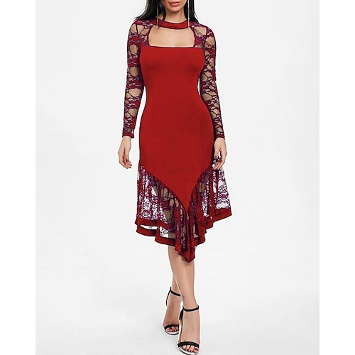Per donna Abito Midi Abito nero Abito in Pizzo Abito da Ballo Vestito da Festa Elegante Moda Moderno Festa serale Feste Occasione speciale Vestibilità regolare Semplice Manica Lunga Girocollo Blu