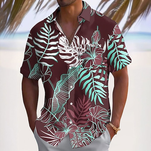 Per uomo Albero di Cocco Piante Tropicali Camicia Camicia hawaiana estiva Camicia Aloha Maniche Corte Camicia Collo ripiegato Tropicale Moda Streetwear Casuale Quotidiano Streetwear Nero Nero Rosso
