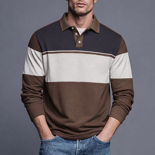 Herren Horizontale Streifen Rugby-Poloshirt Langarm Polo-Shirts Hemden mit Kragen Sportbekleidung Lässig Outdoor Schule Athleisure 3D-Druck Frühling Herbst Winter Blau Rote Braun