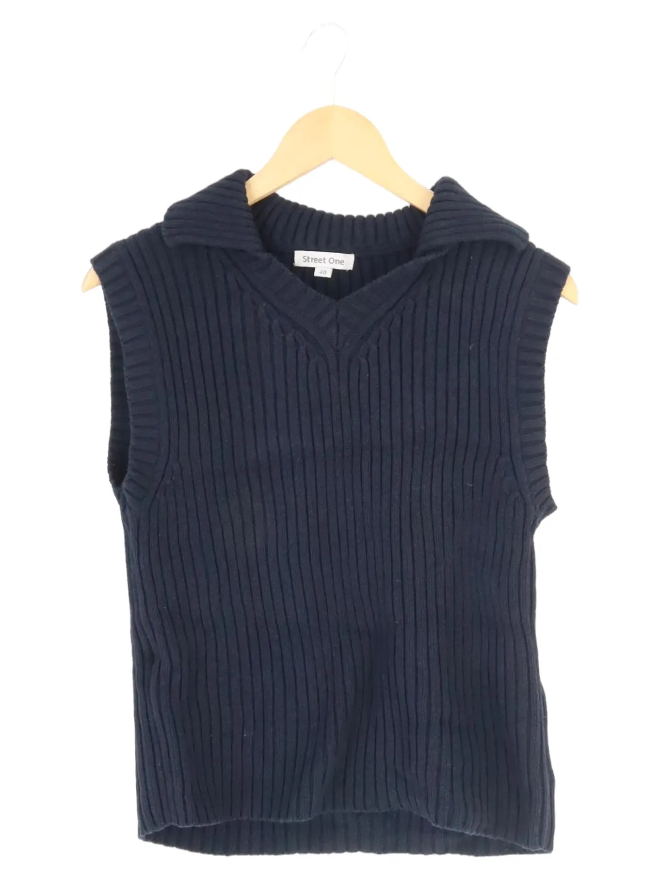 STREET ONE Damen Strickpullunder Dunkelblau Gr. 40 Baumwolle Top