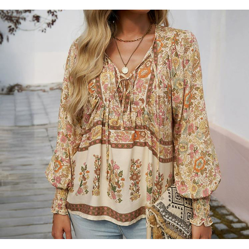 Women's Blouse Graphic Geometric Vintage Stylish Casual 3/4 Length Sleeve V Neck Regular Tops Daily Print Pink Orange Beige Summer Spring