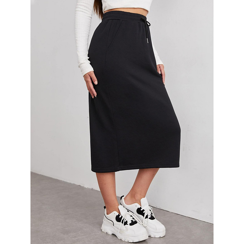 Women's Skirt Casual Maxi High Waist Skirts Plain Drawstring Inelastic Micro-elastic Daily Street Wine Navy Black White Spring Corduroy Polyester
