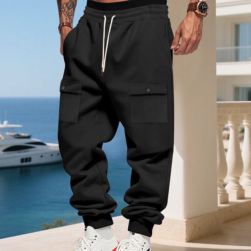 Men's Fleece Pants Sweatpants Joggers Trousers Cargo Sweatpants Pocket Straight Leg Plain Comfort Breathable Outdoor Daily Going out Fashion Casual Black White