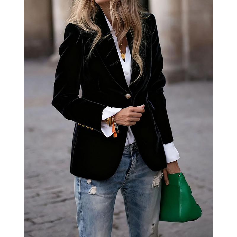 Women's Blazer Velvet Blazer Comfortable Buttons Fashion Plain Outdoor Formal Regular Turndown Regular Fit Long Sleeve Outerwear Blue Black Red Fall Winter