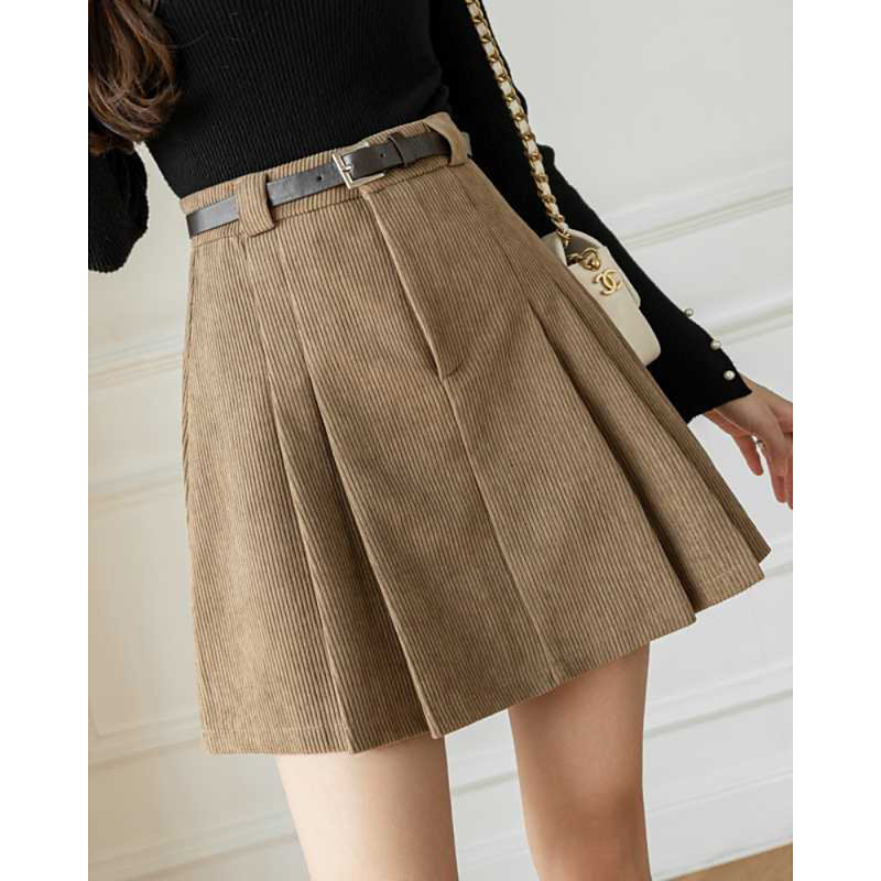 Women's Skirt Casual Mini High Waist Skirts Plain Ruched Pleated Inelastic Daily Street Black Khaki Coffee Fall Corduroy Polyester