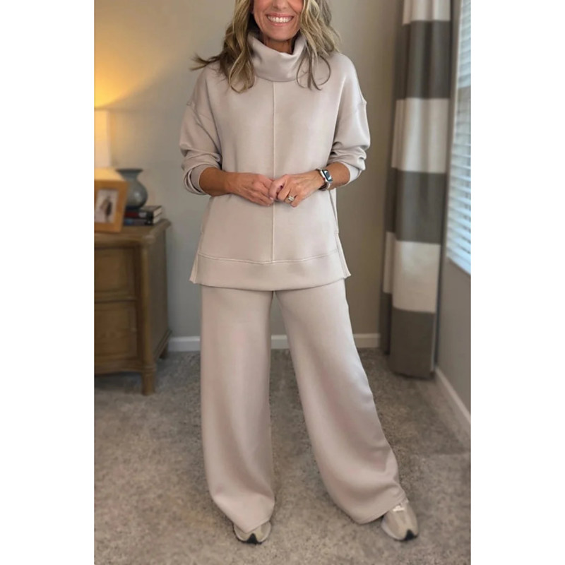 Women's Fashion Streetwear Pants Sets Bolero Top Long Sleeve Turtleneck Solid Color Plain Casual Daily Outdoor Blue Black White Fall Loose Fit