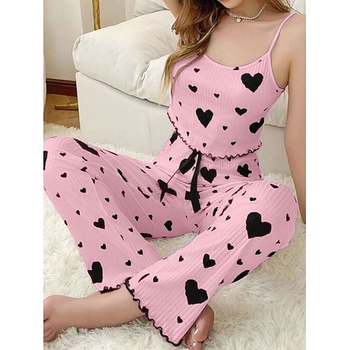 Per donna Set Pigiama Casual Comfort Cuore Elastico in vita Pantalone Quotidiano Casa Senza Maniche Spalline Blu Nero Rosa Rosso Estate Primavera Vestibilità regolare