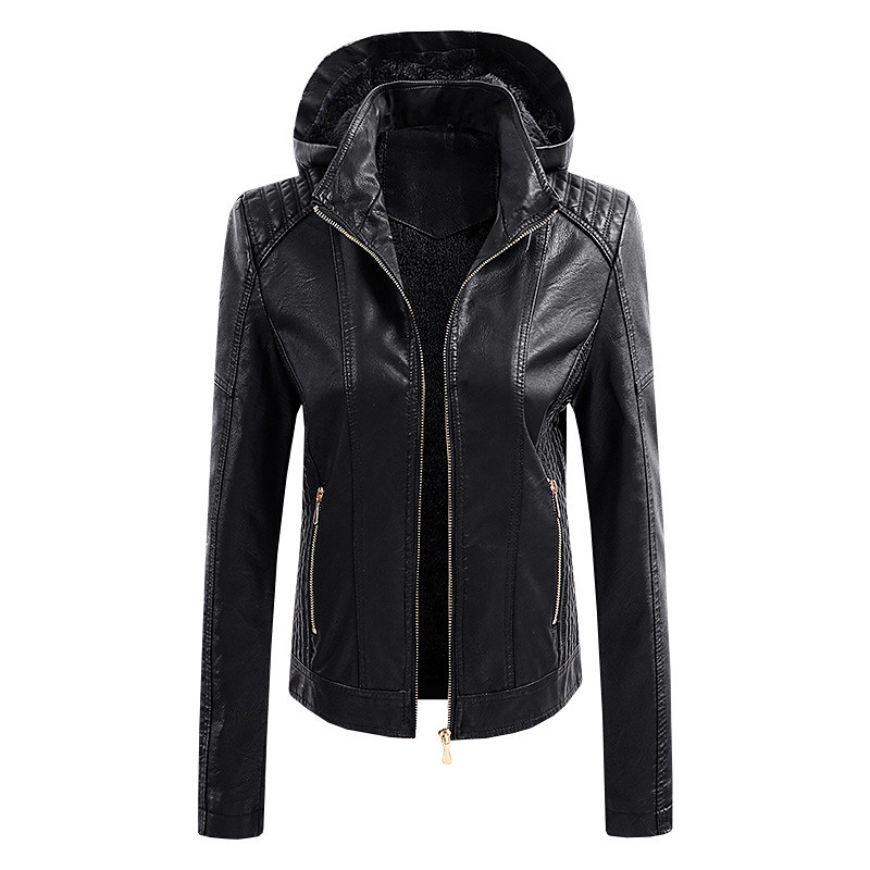 Women's Faux Leather Jacket Biker Jacket Warm Comfortable Zipper Pocket Casual Solid Color Vacation Street Casual Daily Wear Short Hooded Regular Fit Long Sleeve Outerwear Black Red Blue Fall Winter
