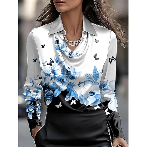 Per donna Camicia Floreale Grafico Elegante Casual Manica Lunga Scollo a Cascata Top Regolari Lavoro Abbigliamento da sera Quotidiano Arricciato Drappeggiato Blu Rosa Viola Verde Estate Autunno