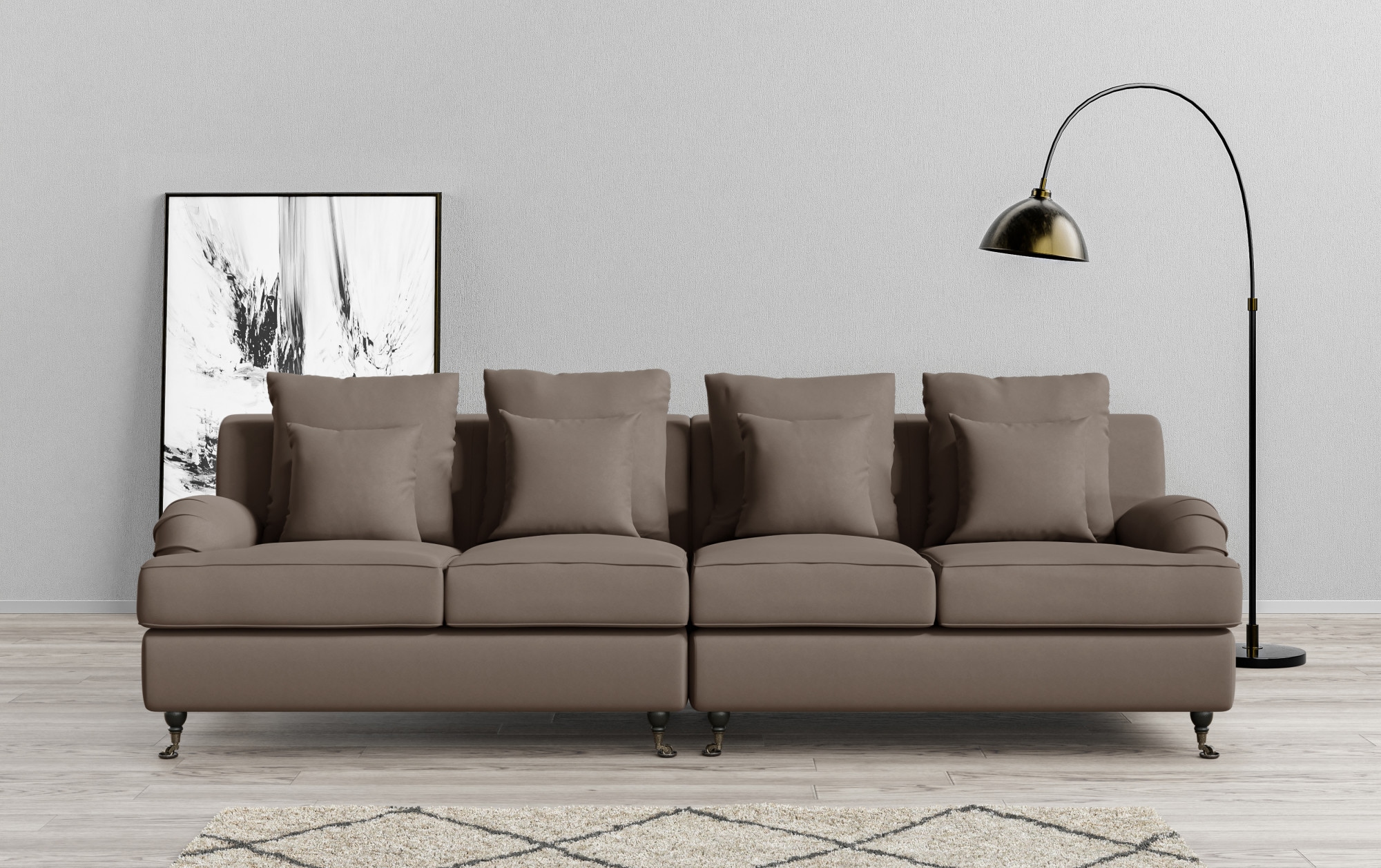 Big-Sofa HOME AFFAIRE "NORIN", grau (taupe), B:289cm H:92cm T:105cm, 100% Polyester, Sofas, zwei Fußarten: vorne - Rollen, hinten - Holzfüße