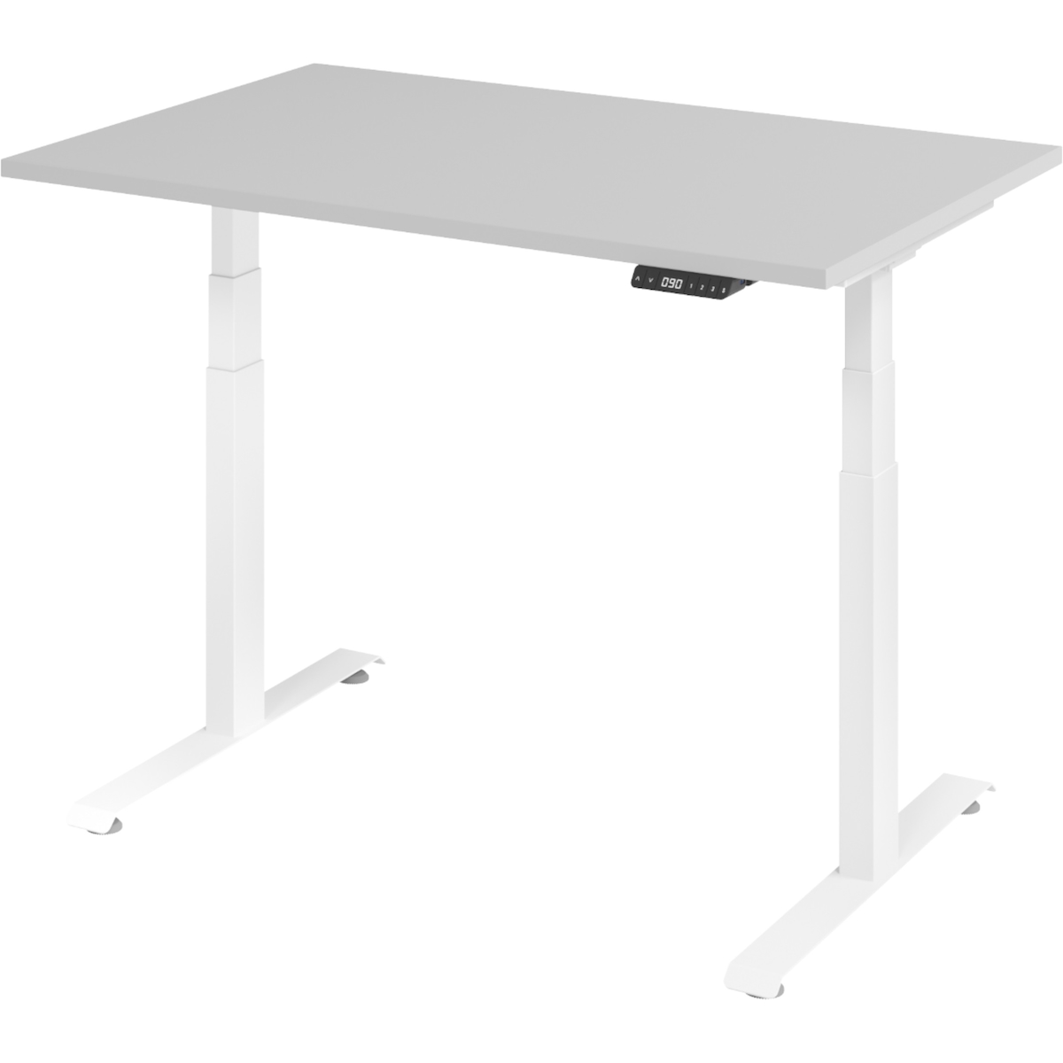 bümö höhenverstellbarer Schreibtisch 120 x 80 cm in grau, Gestell weiß - Höhenverstellbar Elektrisch Stehpult mit 3-fach Speicher, Computertisch,