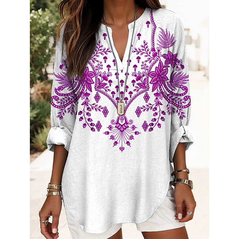 Women's Blouse Tunic V Neck Long Sleeve Boho Casual Tops Floral Graphic Vintage Regular Tops Daily Print White Red Royal Blue Purple Green