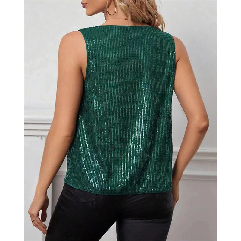 Women's Summer Tops Blouse Dressy Tops Plain Elegant Vintage Daily Sleeveless Cowl Neck Regular Tops Daily Work Holiday Ruched Sequins Patchwork Black Champagne Wine Green Summer Spring