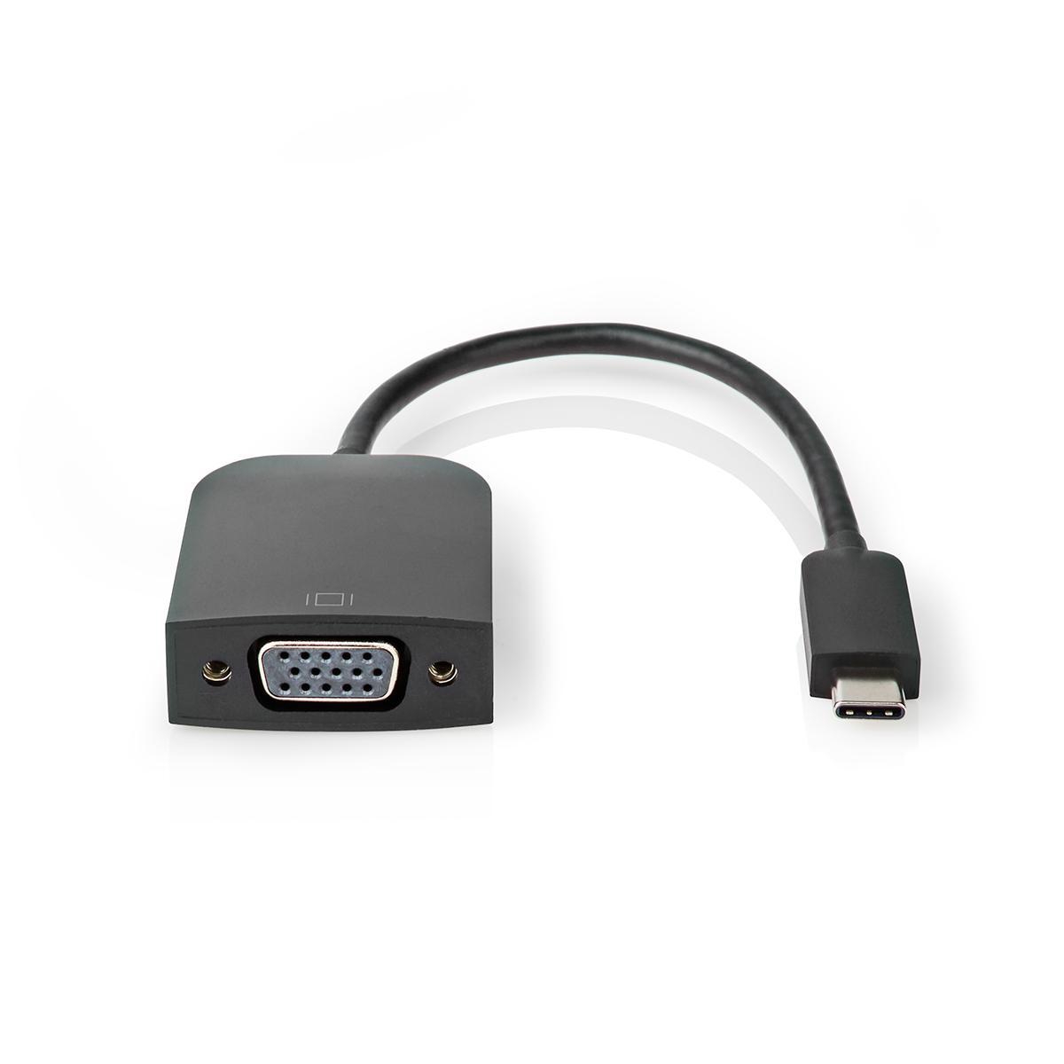 Nedis USB-C Adapter - USB 3.2 Gen 1 - USB-C Stecker - VGA Buchse - 1920x1200 - 5 Gbps - 0.20 m - Rund - Vernickelt - PVC - Schwarz - Plastikbeutel