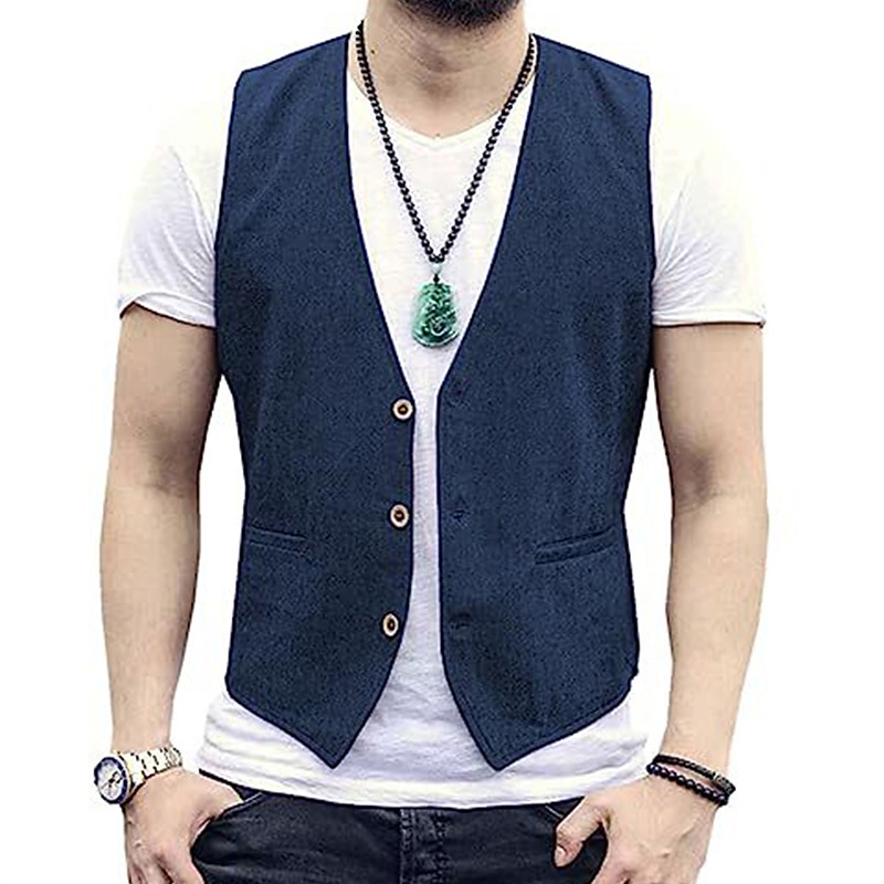 Men's Vest Gilet Vacation Daily Date Fashion Casual Spring Fall Buttons Pocket 75% Cotton Comfortable Plain Single Breasted One-button Lapel Regular Fit Burgundy Navy Blue Dark Green Khaki Vest
