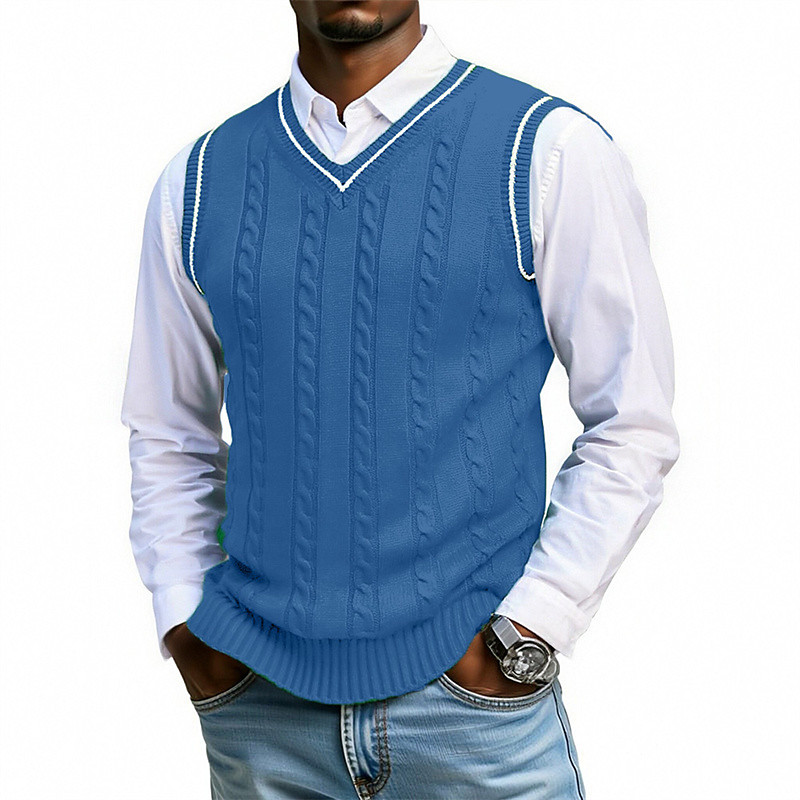 Men's Sweater Vest Dress Sweater Pullover Sweater Jumper Vest Knit Sweater Ribbed Knit Regular Tops Knitted Patchwork V Neck Fashion Streetwear Vacation Business Clothing Apparel Sleeveless Fall