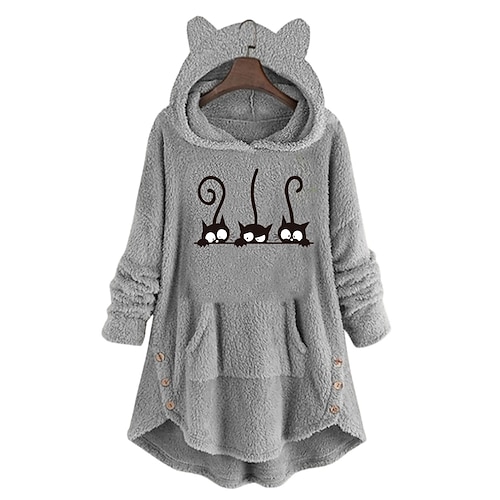 Per donna Felpa con cappuccio Gatto Lettera Casual Manica Lunga Con Cappuccio Top lunghi Streetwear Abbigliamento Quotidiano Casuale Rosa Vino Grigio Autunno Inverno