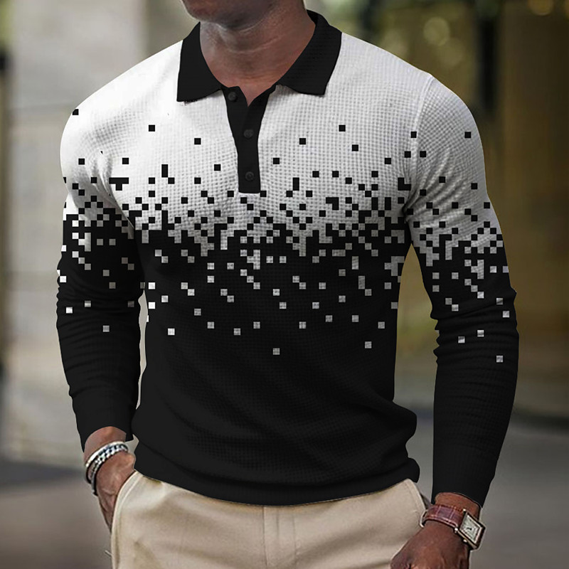 Men's Geometric Golf Shirt Long Sleeve Polo Shirts Collared Shirts Casual Vacation Wear Formal Wear Festival Wear Buttons 3D Print Spring Fall Winter Black