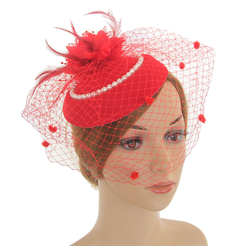 Headdress Tulle Fedora Hat Wedding Horse Race Elegant Vintage Cute With Feather Headpiece Headwear