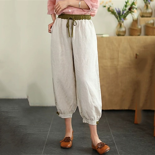 Damen Stoffhosen Lange Unterhosen Streetwear Lässig Knöchellang Natürliche Taille Einfach Kordelzug Bequem Straße Ferien Alltagskleidung Weiß Grün Beige Herbst Normale Passform