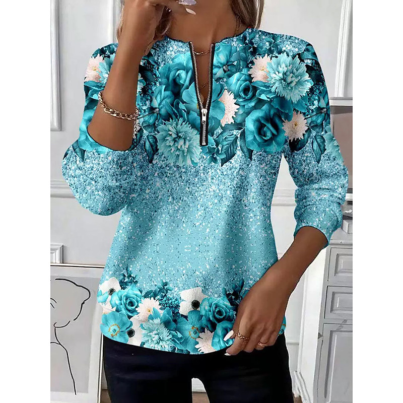 Women's T Shirt Graphic Tribal Vintage Bohemia Tropical Hawaiian Long Sleeve V Neck Regular Tops Daily Going out Weekend Zipper Print White Spring Fall