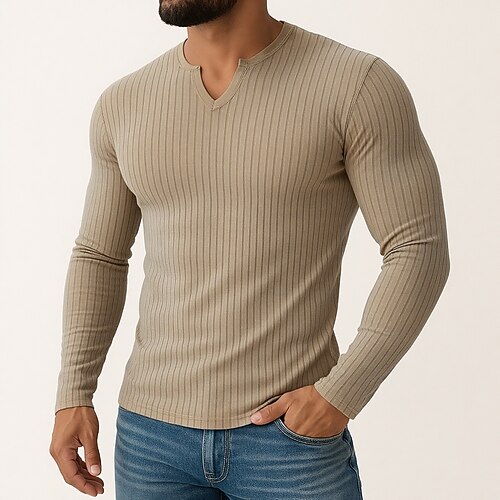 Herren T Shirt Muskelshirt Geripptes Strick-T-Shirt T-Shirt Langarm V Ausschnitt Sommer Ganzjahres Einfach Grubenstreifen Mode Designer Basic Stricken Rein Urlaub Straße Lässig Schwarz Weiß Blau Top