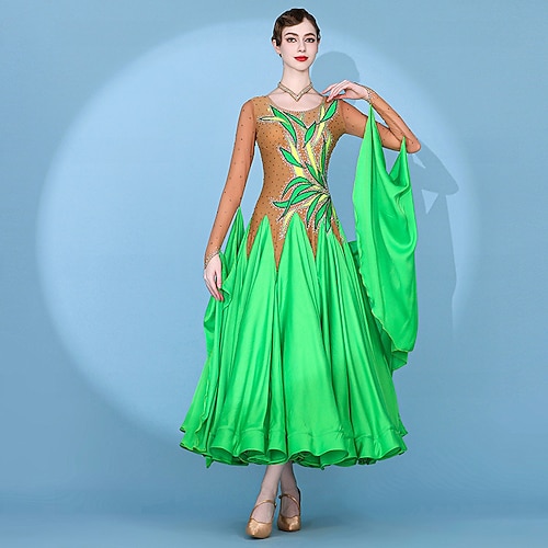 Balli da Sala Vestito Pieghe Giunzione Cristalli / Strass Per donna Performance Allenamento Manica Lunga Alto Spandex Rete