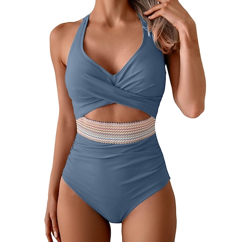 Costume da bagno intero da donna monokini sexy con ritagli vita alta controllo della pancia vita alta slim senza schienale abbigliamento da spiaggia per vacanze colore solido scollatura a collare