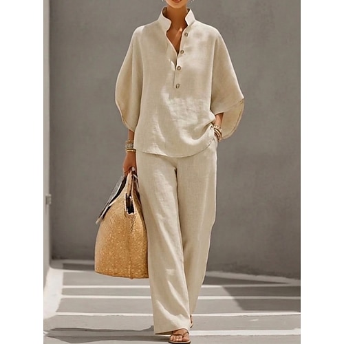 Per donna Set di biancheria in cotone Manica 3/4 Collo alla coreana Tinta unica Quotidiano Angosciato Casuale Quotidiano Nero Giallo Vino Estate Vestibilità comoda