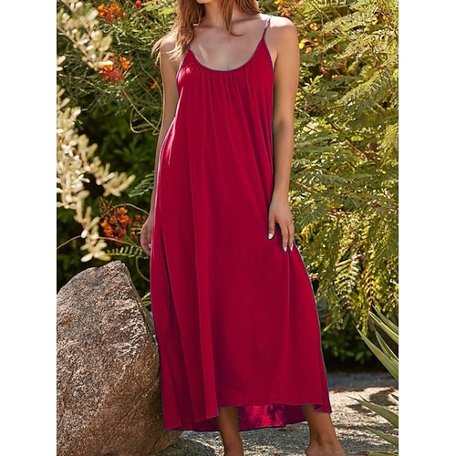 Per donna Abito maxi Finto cotone e lino Vestito Casual Abito in cotone Vestito Canotta Elegante Moda Moderno All'aperto Vacanza Uscire Vestibilità comoda Semplice Senza Maniche Scollo a V Blu Rosa