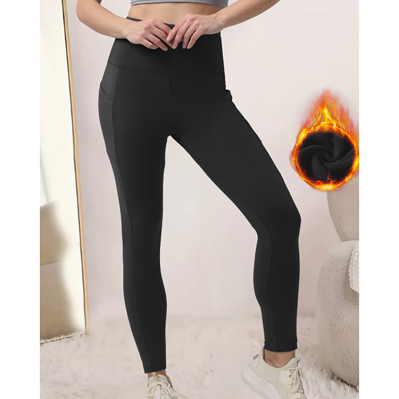 Women's Fleece Lined Leggings Slacks Leggings Streetwear Casual Full Length Natural Plain Elastic Waist Soft Vacation Daily Going out claret Dark-Gray Black Dark Navy Winter Regular Fit