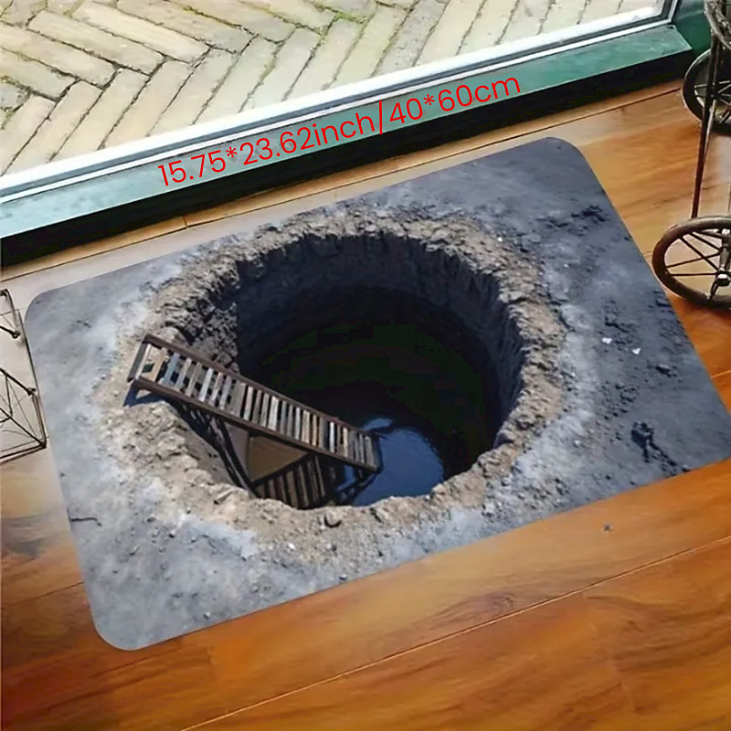 3D Optical Illusion Doormat Visual Trap Floor Mat Non Slip Water Absorbing for Bathroom Shower Entryway Indoor Outdoor Diatomaceous Earth Quick Dry Absorbent 20 x 31 inch