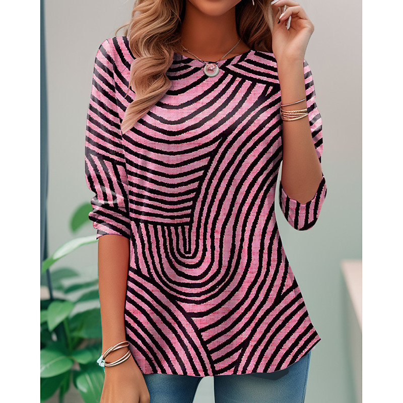 Women's T shirt Long Sleeve Crew Neck Long Sleeve Tunic Graphic Geometric Elegant Vintage Stylish Round Neck Regular Tops Daily Print Pink Blue Purple Green Khaki Prefall
