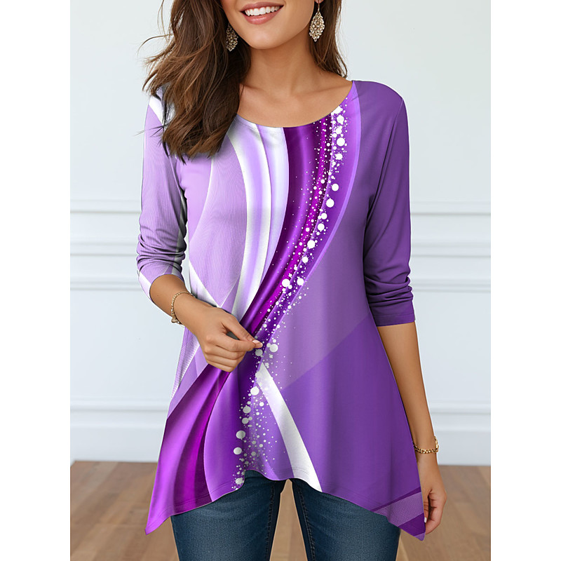 Women's Tunic Graphic Abstract Elegant Vintage Fashion Long Sleeve Crew Neck Round Neck Long Tops Daily Weekend Print Blue Purple Orange Green Spring Fall Winter Prefall