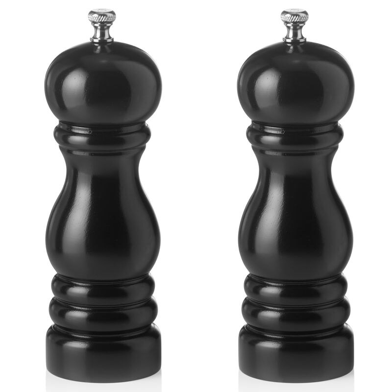 Salzmühle und Pfeffermühle schwarz glänzend, 15 cm, Gummibaumholz, Classic Mill 2 tlg. Set