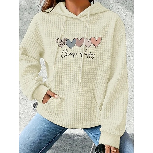 Per donna Felpe con cappuccio Grafico Lettera Casual Manica Lunga Con Cappuccio Top Regolari Streetwear Abbigliamento Quotidiano Casuale Tasca Stampato Nero Bianco Blu scuro Grigio Autunno Inverno