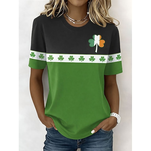 Festa di San Patrizio Per donna Maglietta Grafico Trifoglio Elegante Classico Casual Manica Corta Girocollo Top Regolari Quotidiano Stampato Nero Arancione Estate Primavera
