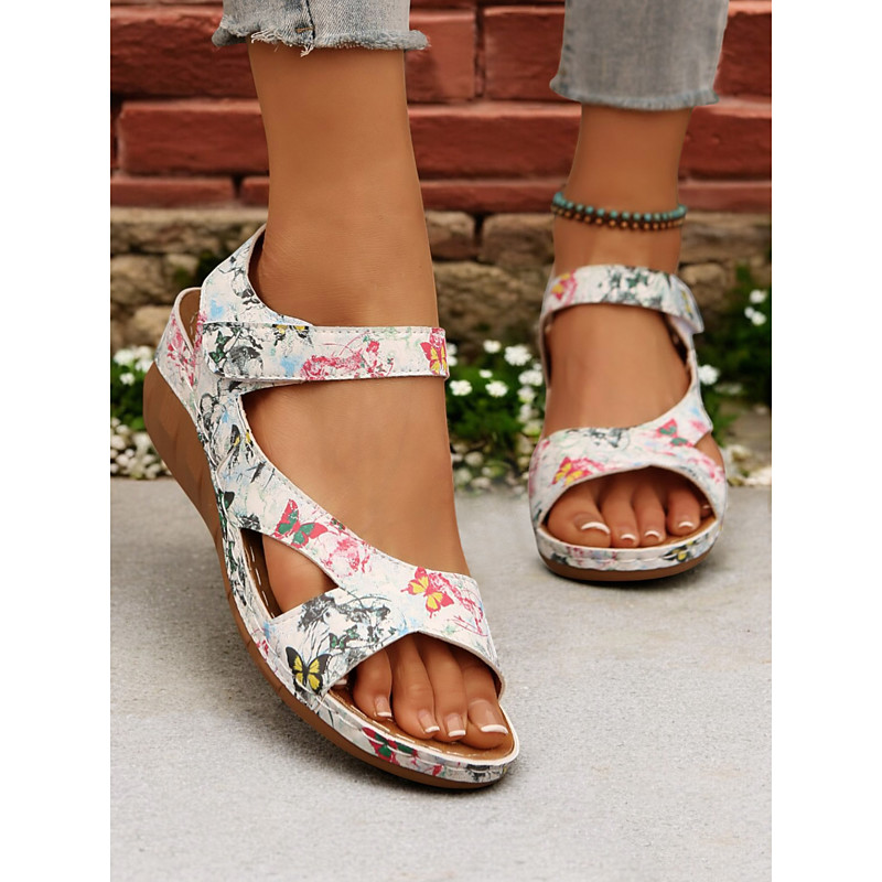 Open-Toe Hook-and-Loop Sandals for Women - Casual Summer Comfort Wedge Sandals for Walking Travel