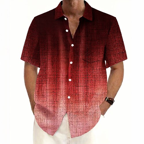Herren Farbverlauf Abstrakte Kunst Hemd Sommerhemd Knopfhemd Kurzarm Modisch lässig Outdoor Urlaub Alltagskleidung Sommer Frühling Umlegekragen 3D-Druck Hemden mit Kragen Eine Tasche vorne Blau Rote