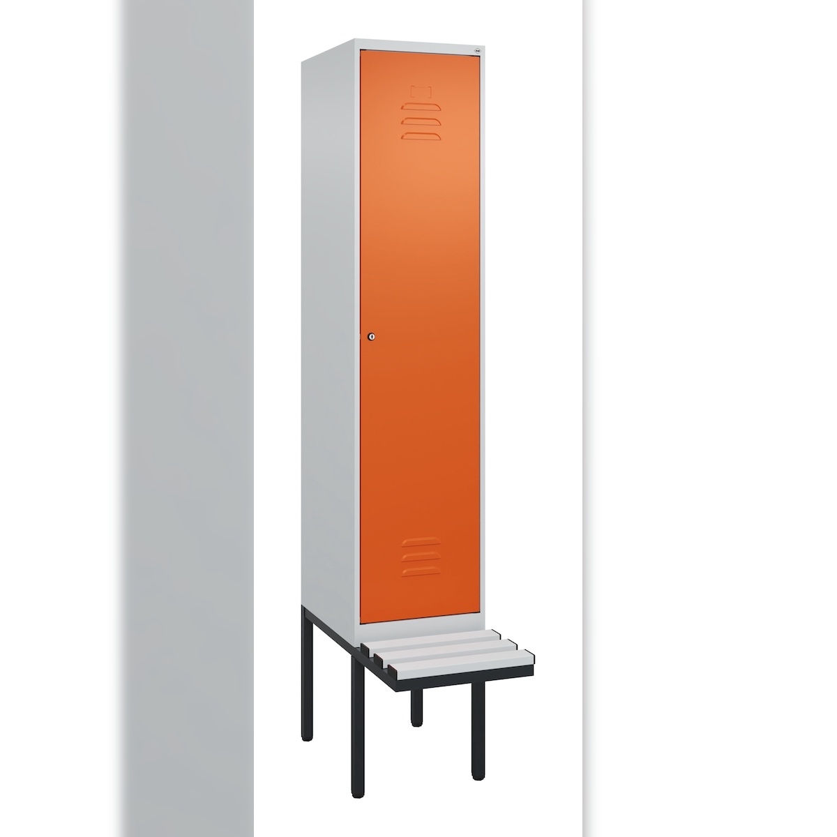 C+P Spind Classic PLUS, Kunststoff schwebende Sitzbank, 1 Abteil, HxBxT 212x40x82cm, Zylinderschloss, Hellgrau/Reinorange von PROREGAL