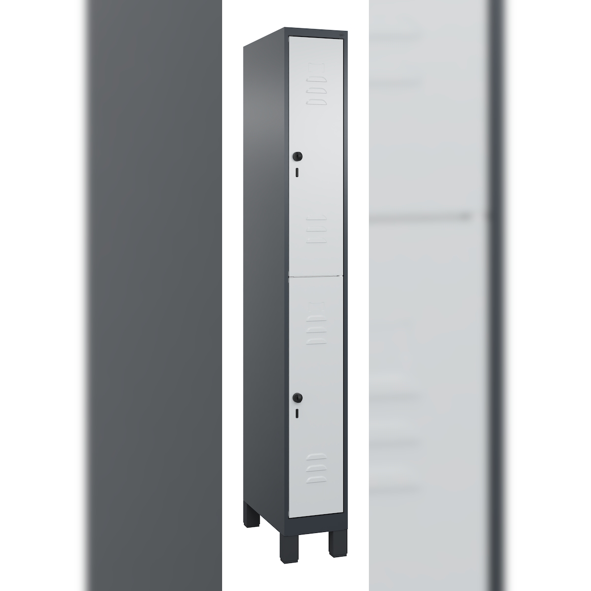 C+P Spind Classic PLUS, Füßen, 2 Abteile, HxBxT 195x25x50cm, Sicherheitsdrehriegel, Anthrazit/Hellgrau von PROREGAL
