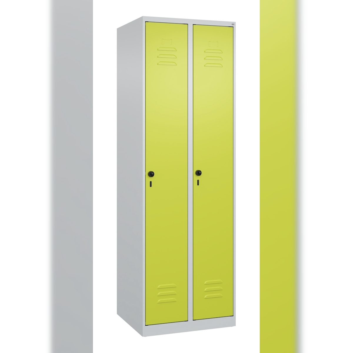 C+P Spind Classic PLUS, 2 Abteile, HxBxT 185x60x50cm, Sicherheitsdrehriegel, Hellgrau/Clowngrün von PROREGAL