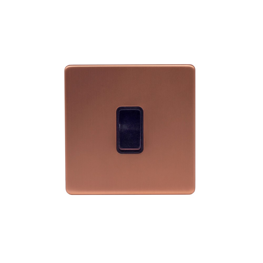 Lieber Brushed Copper 1 Gang Intermediate Switch - Black Insert Screwless - Size: 86mm x 86mm x 2.1 mm