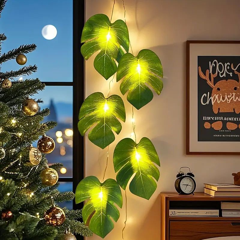 Fairy Tale String Lights Palm Leaf Garland Lights 3m 20LEDs suitable for New Year Party Jungle Theme Wedding Birthday Home Balcony Garden Window Decoration