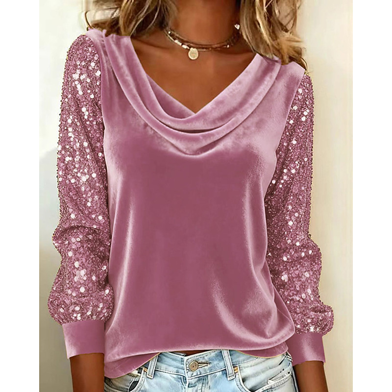 Women's Blouse Dressy Tops Sequin Tops Plain Elegant Vintage Ladies Long Sleeve Cowl Neck Regular Tops Daily Work Holiday Ruched Sequins Patchwork Blue Black Pink Red Purple Fall Winter