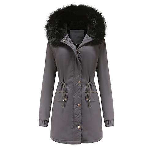 Per donna Parka Caldo Confortevole Bordo in pelliccia Cerniera Tasca Con cintura Casual Tinta unica Vacanza Streetwear Casuale Abbigliamento quotidiano Lungo Con Cappuccio Vestibilità comoda Manica
