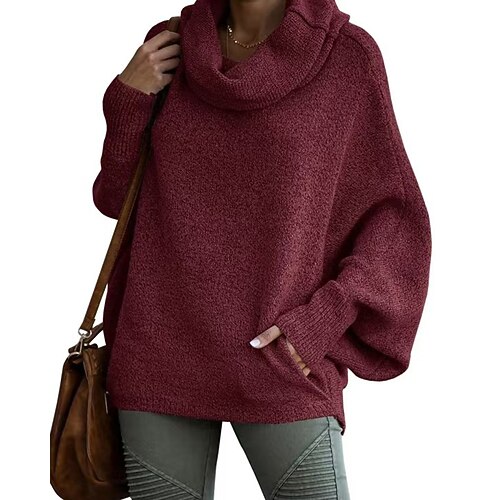Per donna Felpa Maglione Moda Streetwear Casual Tinta unica Dolcevita Lavorato a maglia Manica Lunga Top Regolari Maglia Quotidiano Ferie Uscire Rosso bordeaux Rosso Autunno Inverno